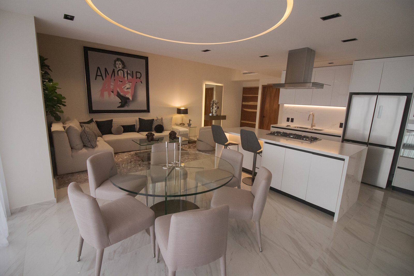Los interiores tienen un concepto vanguardista, con cocinas equipadas, pisos de mármol y sistemas de automatización. Además, cada unidad tiene 2 lugares de estacionamiento y acceso privado para visitas.